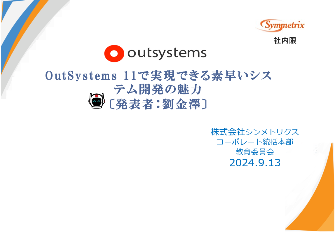 今回の技術講習会では、OutSystemsの特徴や開発フローに関する資料を使用し、劉金澤さんが実際にOutSystemsの画面を操作しながら、ドラッグ&ドロップによるコーディングをあまりしないローコード開発の「素早いシステム開発の魅力」を実演しました。